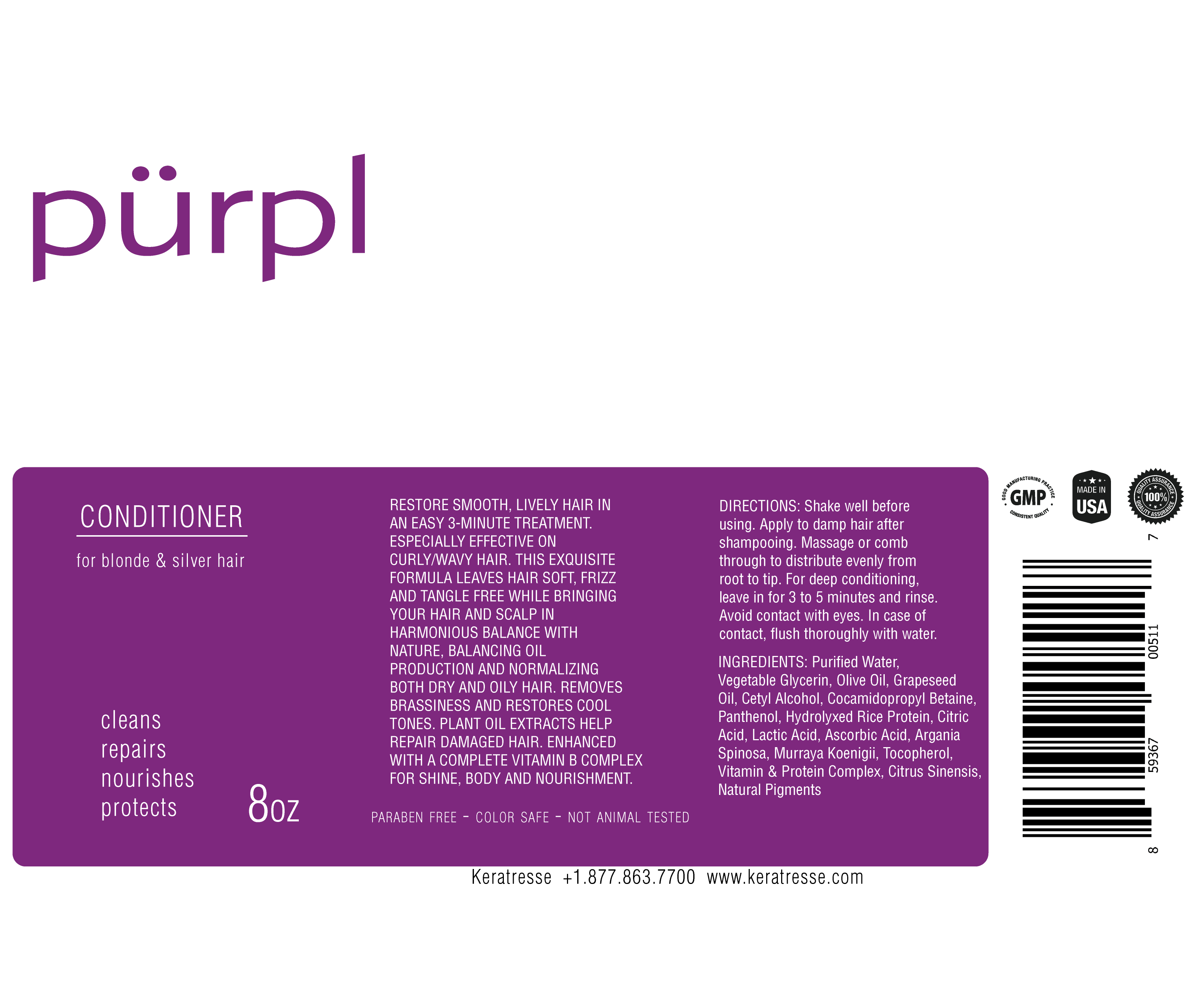 Purpl's Color Extend Conditioner gently detangles and conditions color-treated hair. This hair conditioner nourishes and strengthens for a high-shine, vibrant finish.