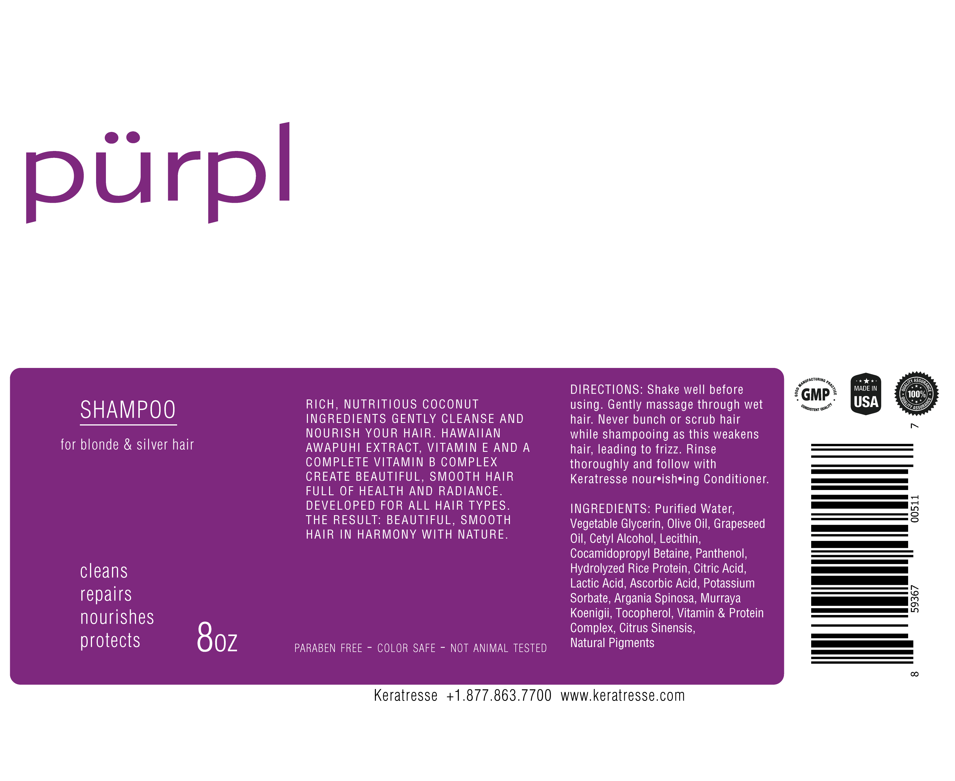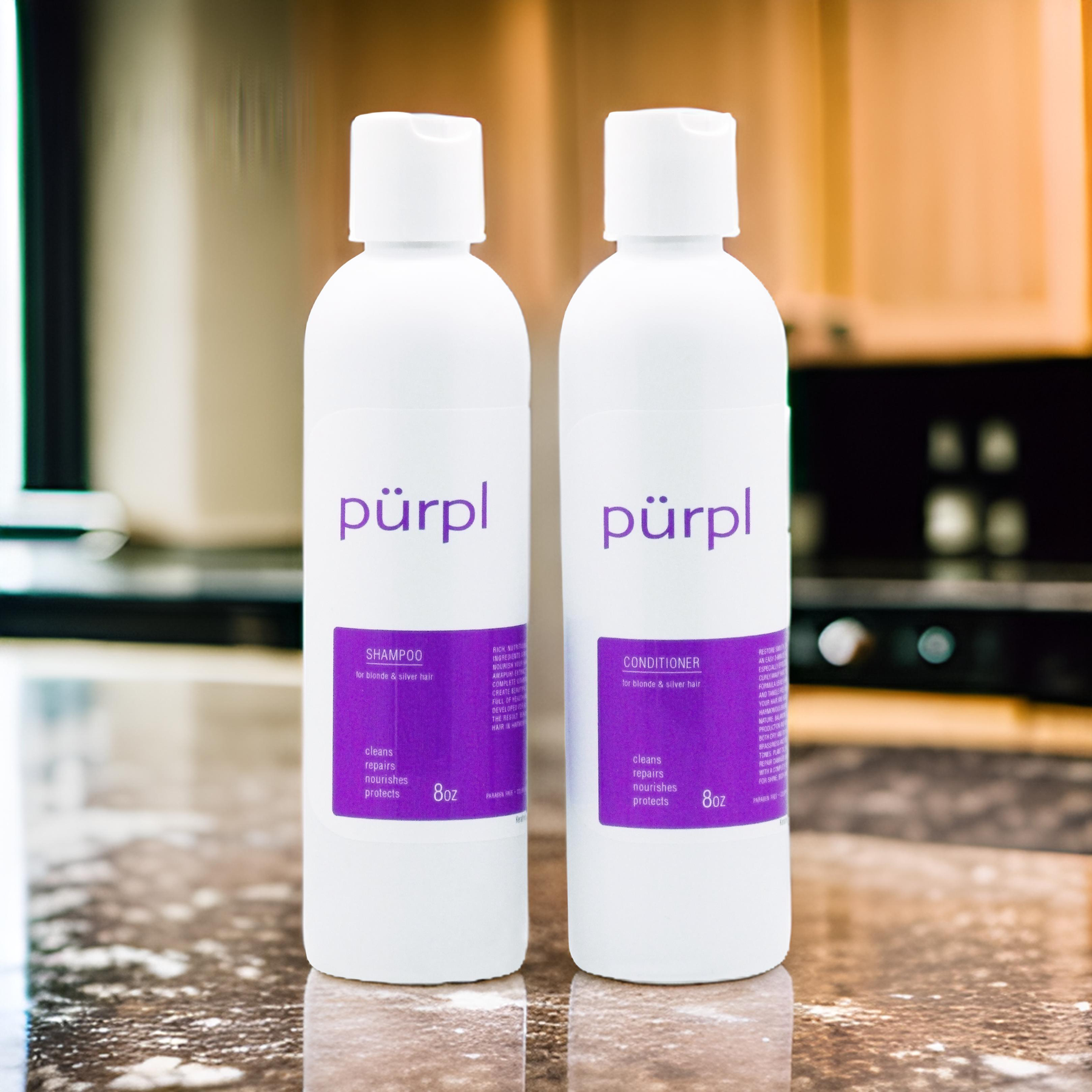 Purpl Shampoo is a color-depositing and protecting purple shampoo for blonde and gray hair. Purpl's Protein Complex strengthens and pure violet pigments remove unwanted brassiness leaving blonde and gray hair color cool and bright.